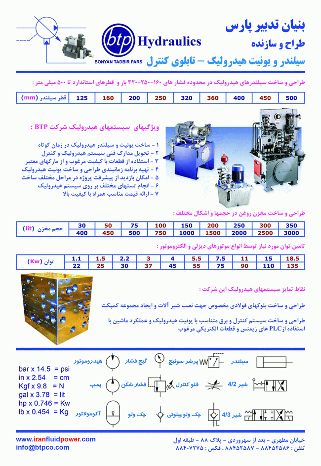 هیدرولیک شرکت بنیان تدبیر پارس |